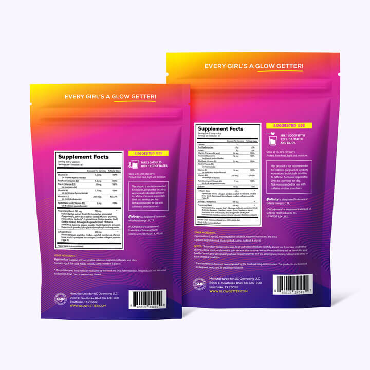Glow Getter’s Super Peptides Duo is our original 2-step daily system, thoughtfully formulated to support healthy weight management, clean energy, mental focus, and whole-body wellness including radiant skin, joint comfort, and gut health.